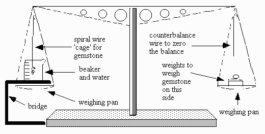 A regular diamond or chemical balance, mechanical or electronic may be adapted for hydrostatic SG determinations by devising a way of weighing the stone in air, then in water, using the same pan. The conditions required are: