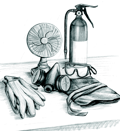 Always wear rubber gloves when handling caustic chemicals. Goggles, long sleeve shirts, and aprons are also recommended. Be careful that you do not accidentally carry contaminates into your living space. When using strong chemicals, wear a lab coat or coveralls. This will protect you when you are working, and makes it possible to leave the chemicals in the studio, where they belong.