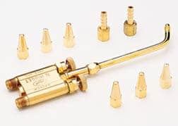 Double-gas torches, such as the propane system shown at right, are more expensive, but more versatile. Images courtesy Rio Grande. |