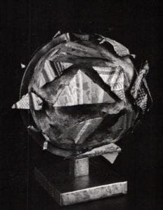 This year, at the Biennial, they were one of the most consistent in terms of quality and style. On the whole, the exhibition presented few pieces of jewelry. Instead, we saw many wall pieces, vessels and sculptures. Slowly, enamel is passing from two dimensions to three (nonvessel), with the creation of mobiles, machines, "industrial recycling" sculptures and poetic objects.