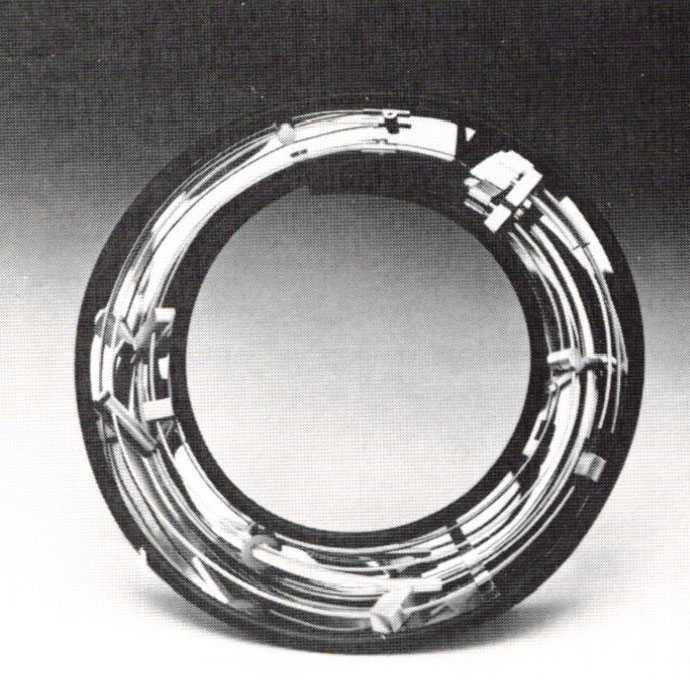 Uozumi, not coincidentally, has become a member of Robert Lee Morris's "Art-wear" stable, and it is Morris, I think, more than any American jeweler, who should be credited with exploiting the idea of "art to wear"—not by creating art objects for the body, but by celebrating the body with art. His "signature" torso displays are less gratuitous display gimmicks than essential supports for work that is not realized without a body. It may be a bit cynical to observe that wearable jewelry is more salable, but this seems a point worth mentioning. (Similar criticisms have been leveled at the current art market: painting sells a good dead better than site-specific sculpture.) Morris has confronted the market "avant-garde" fashion. His work may be quickly appropriated by the world of high fashion and promotion, and he may not be exploring the political capacity within jewelry that Slivka observed, above, among certain British jewerlers. But Morris's clients, too, must "demonstrate commitment" to his jewelry. This is in marked contrast to, for example, Carole Bowen's Eraser Suite rings (#17) which may harbor some political intentions—as "anti-cocktail" rings, perhaps—but give little evidence of requiring rings to make their point—or pun.