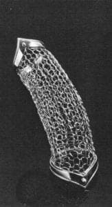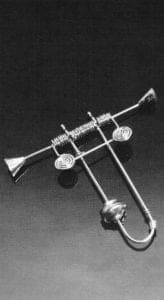 The Grand Prize in 1984 was awarded to Norman Cherry of Scotland for his Rainbow with Arrow brooch that used platinum wire as the basis for a highly textured woven structure. Blauer pointed out that the tensile strength of the metal was important in the design and execution of the piece, while runner-up Susan Hamlet exploited the same tensile strength of the material in her Flexible Column Bracelet. Lynda Watson-Abbot, also a runner-up in the 1984 competition, took a completely different approach to the material, using the platinum in combination with gold to create a sophisticated and elegant graphic design.