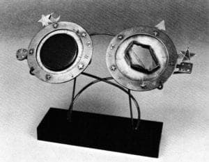 Grand Finale - SNAG's Saturday evening's festivities at San Francisco's Exploratorium featured a delicious buffet, dancing and participation in scientific exhibits: creating huge iridescent bubbles, catching your shadow on a wall and transmitting your voice with parabolic reflectors. Ira Sherman offered two showings of his tongue-in-cheek performance of "Panaceas to Persistent Problems - Sculptural Devices." Sherman and his assistants demonstrated bizarre, mechanical, metal contraptions on good-natured volunteers from the audience. One of these complex wearable sculptures appeared to be a pneumatic chastity belt. Sherman's devices were intricate, masterfully crafted, surprisingly strong and full of humor, providing another healthy chance for metalsmiths to laugh at themselves.