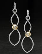 Sally Lynn Mitschke from Montanari Fine Art Jewelers in Kansas City, Missouri, for her 18K yellow gold earrngs featuring 12 mm golden South Sea pearls accented with yellow sapphires and diamonds.