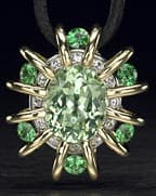 Robert Bruce Henderson from Plateau Jewelers Inc. in Sammamish, Washington, for his 18K yellow gold and 14K white gold pendant featuring a 7.46-ct. grossularite accented with a 1.26-ct. tsavorite garnet and diamonds.