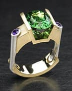 William Travis Kukovich from William Travis Jewelry in Chapel Hill, North Carolina, for his 18K yellow gold and platinum ring featuring a 4.71-ct. mint-green tourmaline and two purple sapphires .
