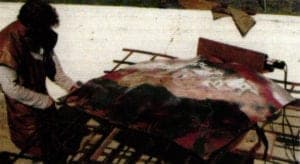 Ben uses a modified electric wire cable winch (Figure 4) to help form the enamel. With the enamel laying on the wire cable, Ben loops the wire cable around two front corners of the enamel and his assistant threw the switch for an instant and the enamel was pulled against the back stop forming more crinkles.