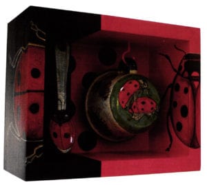 She works over recycled metal enameled pieces: cups, dishes, spoons, even clyster-pipes and chamber pots, which she finds in Mexican flea markets. Her interest makes her look for all of these old objects that nobody uses anymore, even while traveling; she has bought many of them in Turkey and in Spain. Maritza explains, "I love to interact with these findings, making them lose their old utilitarian function and giving them a new artistic expression."