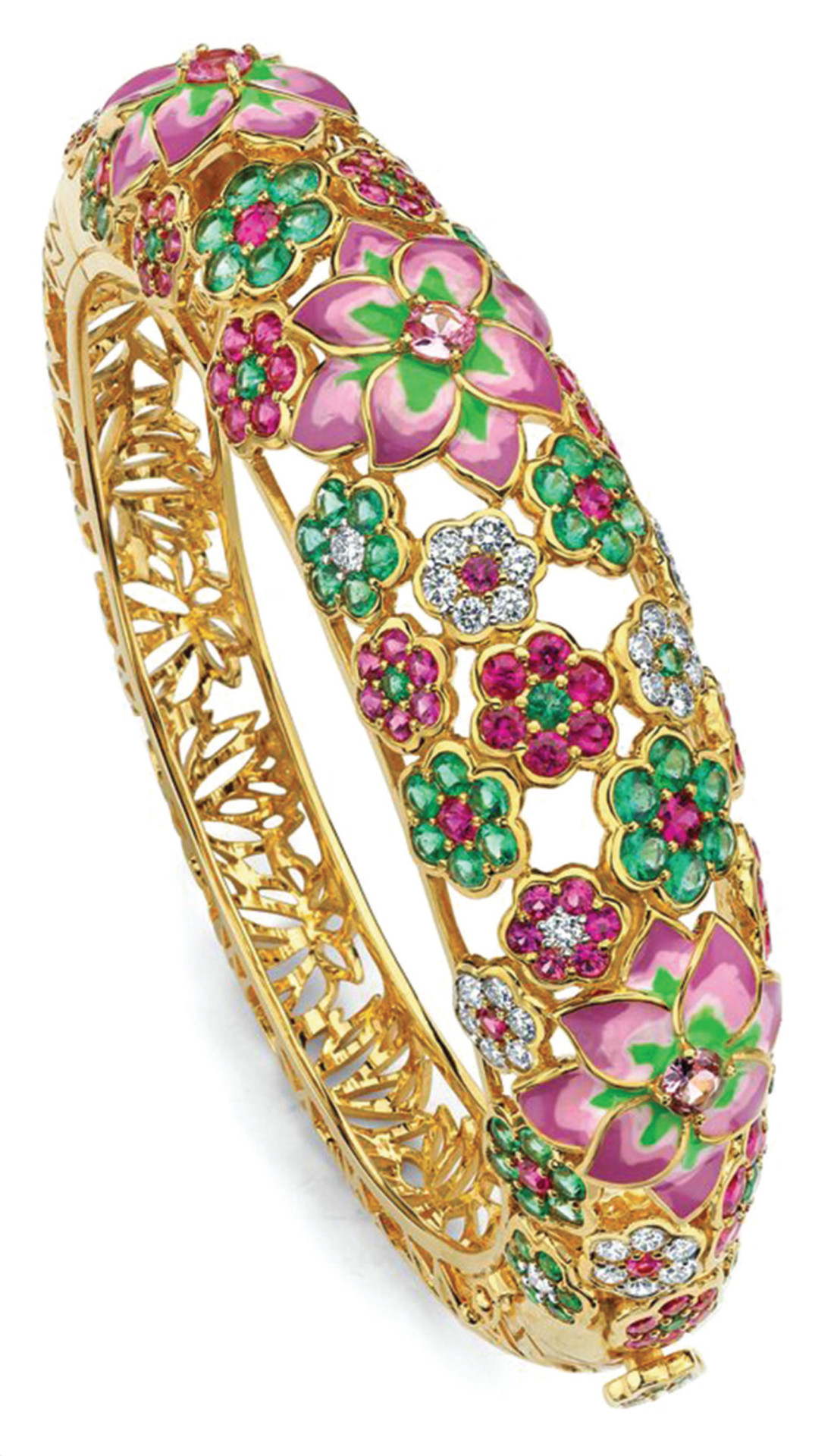 Expect to see a lot of color incorporated within the trend. "Designers are using different colored stones to bring out the colors of a flower, or green enamel to accentuate leaves." Maccaroni expects the trend to continue into the New Year but believes it will then transition into a more tropical interpretation. "We expect to see the use of bolder colors in stone accents and larger pieces to interpret more tropical flowers."