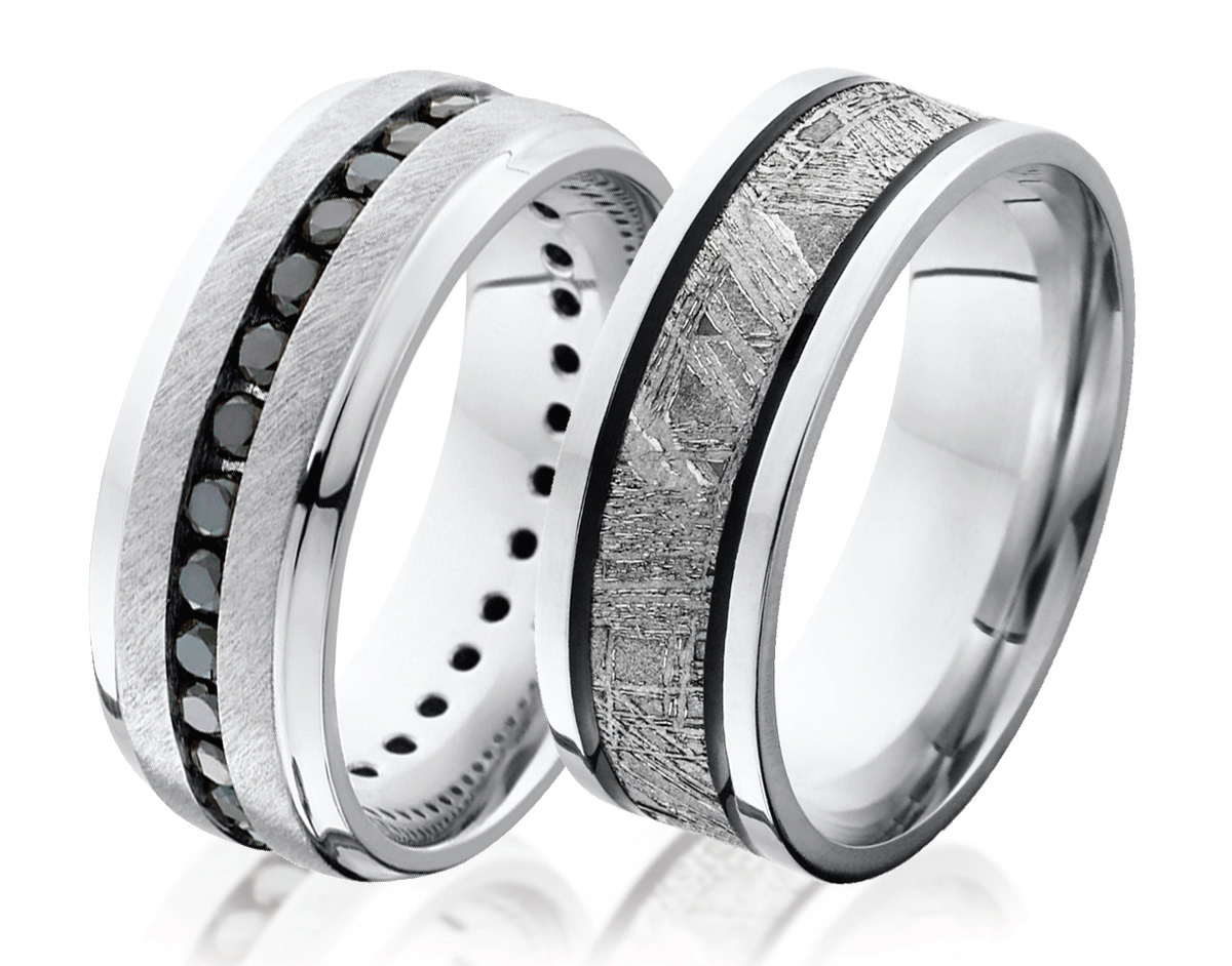 For traditional grooms, classic styles with a twist will be best sellers. "Think a comfort fit band with an added detail, such as milgrain edging." For men interested in more personalized styles, designers can get more creative. "Platinum rings with alternative materials such as ceramic or meteorite will be exciting."