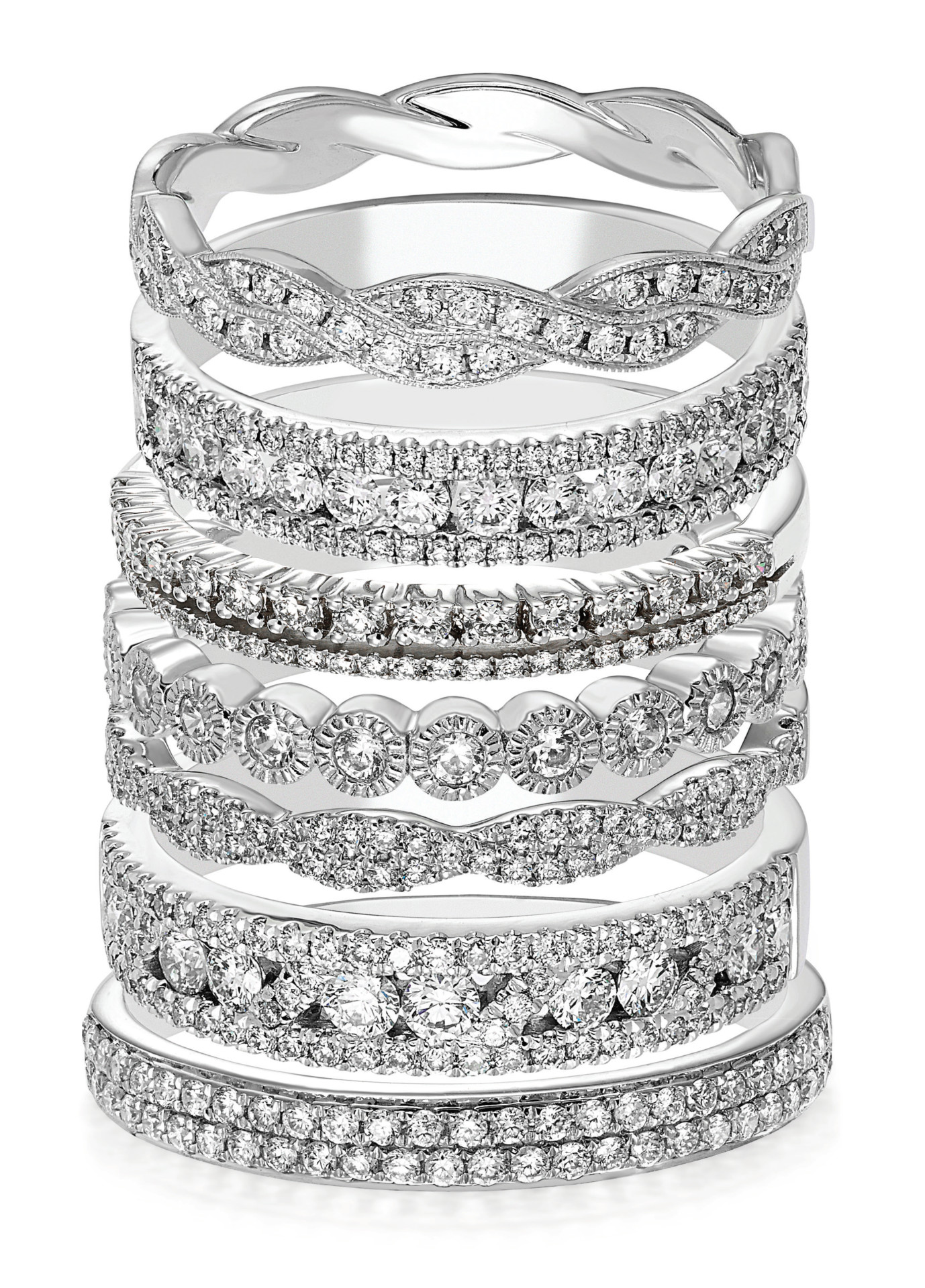 Some women have also begun foregoing traditional wedding ring styles altogether for simple bands that can be stacked or mixed and matched with other rings that are received or purchased to mark milestones. "Stackable bands continue to be on trend," she says. Moynihan notes that she's seeing petite and simpler platinum bands as leading the trend."Consumers want options to grow their look as they encounter milestone events. She could have a birthstone set in a platinum band to celebrate the birth of a child, or stack it with an anniversary band. Millennial brides don't just see them as wedding bands. They want to start with a blank slate and create their own look through life's journey."