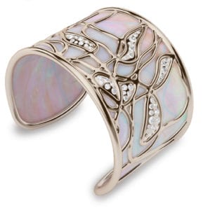 Naturalia reflects the transformational, translucency of watery realms in H2Obsession and the grandeur of sweeping landscapes in Daughter Earth. Gems in colors from light and dark blues and grays to rich brown, poppy, golden yellow, and greens express these sub-trends. Swarovski also introduced new cuts translating these themes, such as Puress that resembles a water droplet by merging a cabochon dome with a faceted body, and Leaf, which mixes square and round stones suggestive of leaves and petals.