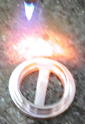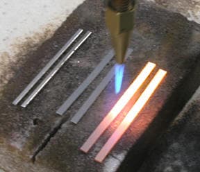I placed the wire on a soldering block rated for use with platinum and annealed by heating with a torch to an orange/red color and holding it at for 30 seconds to one minute. I wore rated platinum welding glasses.
