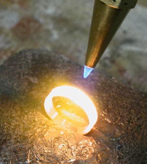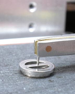It's advisable to perform the 22-karat gold granulation under magnification. The beads should have a very small space between them so the contact for fusion welding takes place between the bead and the platinum wire rim.
