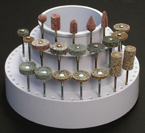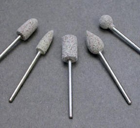In addition to the 6 inch wheels, the XR abrasives are offered in mounted points and used with a flexible shaft at the bench. The shapes are ideal for finer detail.