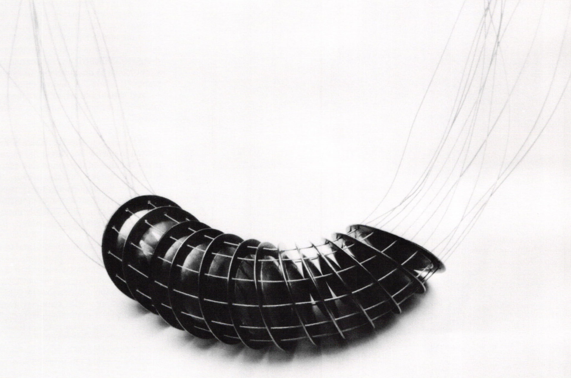 To achieve the clean, pure forms on which she constructs her "collages," Grossner employs industrial techniques and machines, especially the lathe.