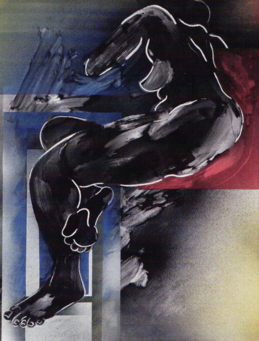 Wall work, such as Rita Deanin Abbey's "Impressions", Noboru Matsouka's "Bird Tinted Red Color," and the striking "Escape from the Labyrinth" and "Escape from the Shackles" by Jan Harrell were as varied as can be. Abbey's work translates and expands the academic figure gestural drawing of a nude into porcelain enamels. There is evidence of sgraffito, masking, spraying, over spraying, layering, rubbing off and smearing the colors in this seemingly unassuming work.