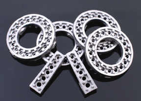 McLaughlin designed the earrings using computer aided design (CAD) software and the parts shown were milled in carving wax using computer aided manufacturing (CAM) technology. The details of the design are precisely laid out so assembly, setting and finishing will be expedited. Traditional manufacturing methods would take hours longer to produce the same clean, precise results. These parts were cast using Hoover and Strong's 950 TruPd palladium by TechFrom, Portland, OR. Tip: Some of the new 950 palladium alloys can be a bit sluggish and cool quickly when cast. When designing a model for casting, keep the wall thicknesses even, avoiding thick and thin connections within the design. This will contribute to castings that result in 100 per cent fill. The castings shown here filled perfectly and there were no problems with voids or incomplete areas.