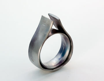 palladium fabricationAfter the ring cooled to room temperature, the inner and outer pieces were fit and final adjustments made. There was good contact and tension between the pieces and they were soldered using the easy solder that was pre-melted into the depressions at three points of contact. A vented torch tip was used because of the volume and weight of the pieces.