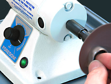 Tip: The Foredom Micromotor has moderately good torque at medium to high operating speeds. A cut or groove can easily be controlled and positioned in metal. Due to the high operating speed, a lubricated bur will not grab or wander.
