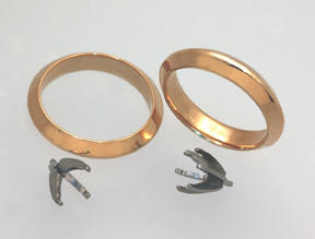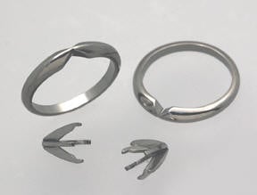 These parts are 950 Pd die-struck shanks and settings for 1.00 carat size gemstones. The shanks are size 7. This sequence will highlight the fitting, assembly and soldering of these 950 Pd solitaire rings. These parts are precisely fit as supplied and little or no alteration is required.