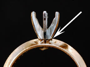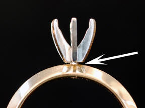 After the soldering is completed, inspect the joint. The solder has smoothly and evenly flowed between the setting and the shank - indicated by the arrow.