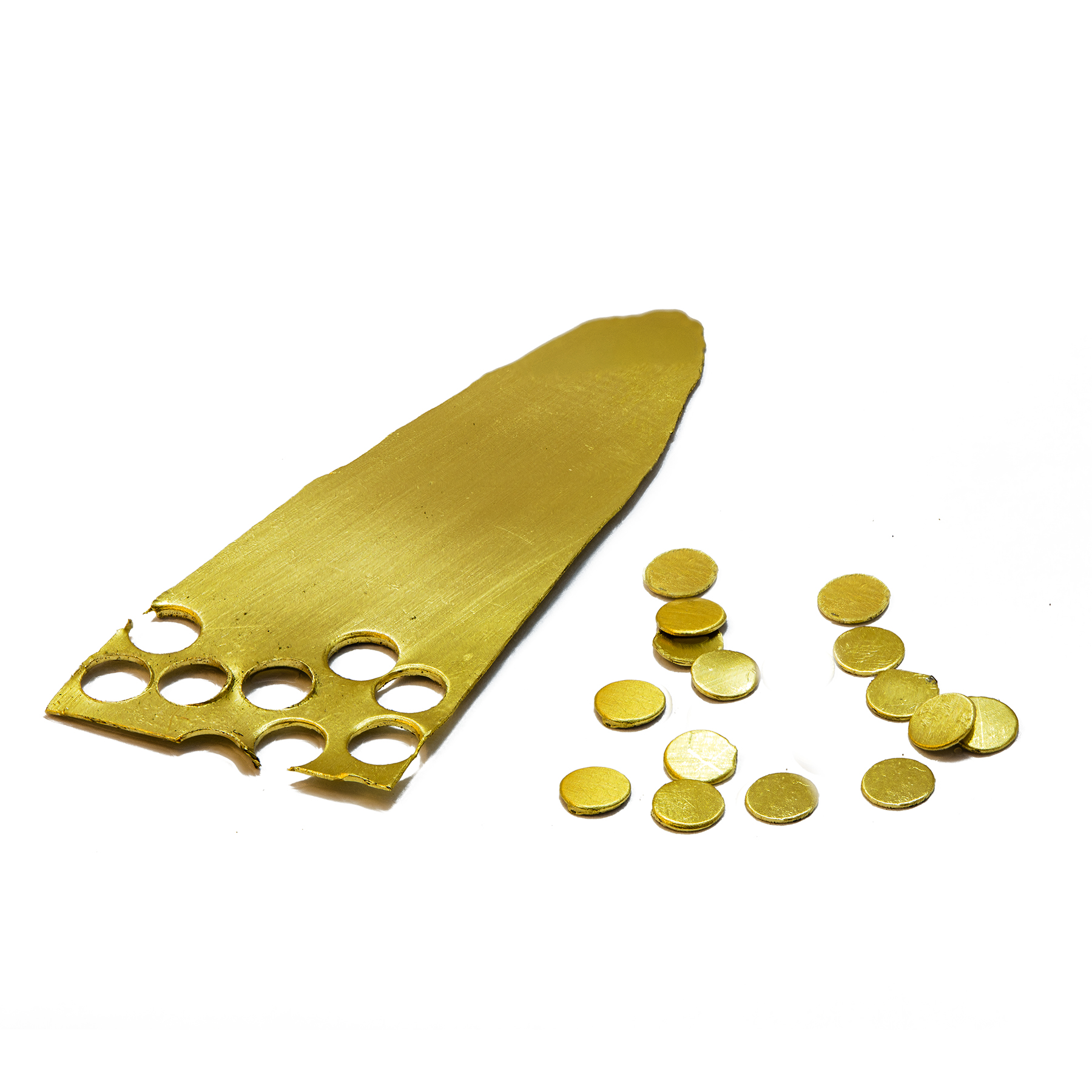 I usually start with 30-gauge sheet as my constant and mill it thinner from there if needed. Since I always have leftover 22k sheet scrap from making bezels, there is no need to prepare materials specifically for making granules, which is a big time saver. Now when I make granules, I just grab some metal sheet, punch out as many small discs as I need, and then melt them on my charcoal block. And while I haven't tried it myself, I imagine that a hole punch could also be used for batch soldering requiring multiple pieces of solder, all the same size. I can't wait to find even more uses for this latest addition to my tool chest.