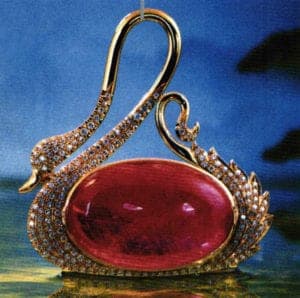 Pendant-brooch "Cigno" by Pietro Graser. Gold, rubellite and diamonds, 1984