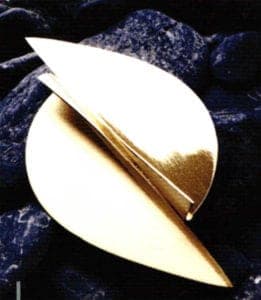 Brooch "Genesis" by Marcella Gallo. Yellow gold, 1992. A clear reference for the Genesis brooch can be found in the Japanese kenzo Tange's stadium, built in 1964 in Tokyo