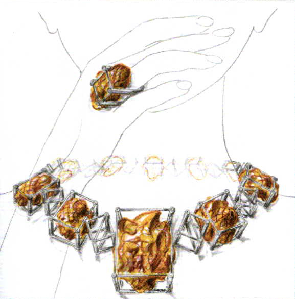 Necklace and ring by Rodolfo Santero. White gold, amber. Manufacturer: Jubilerska M. Wasowska, Warsaw, 2005