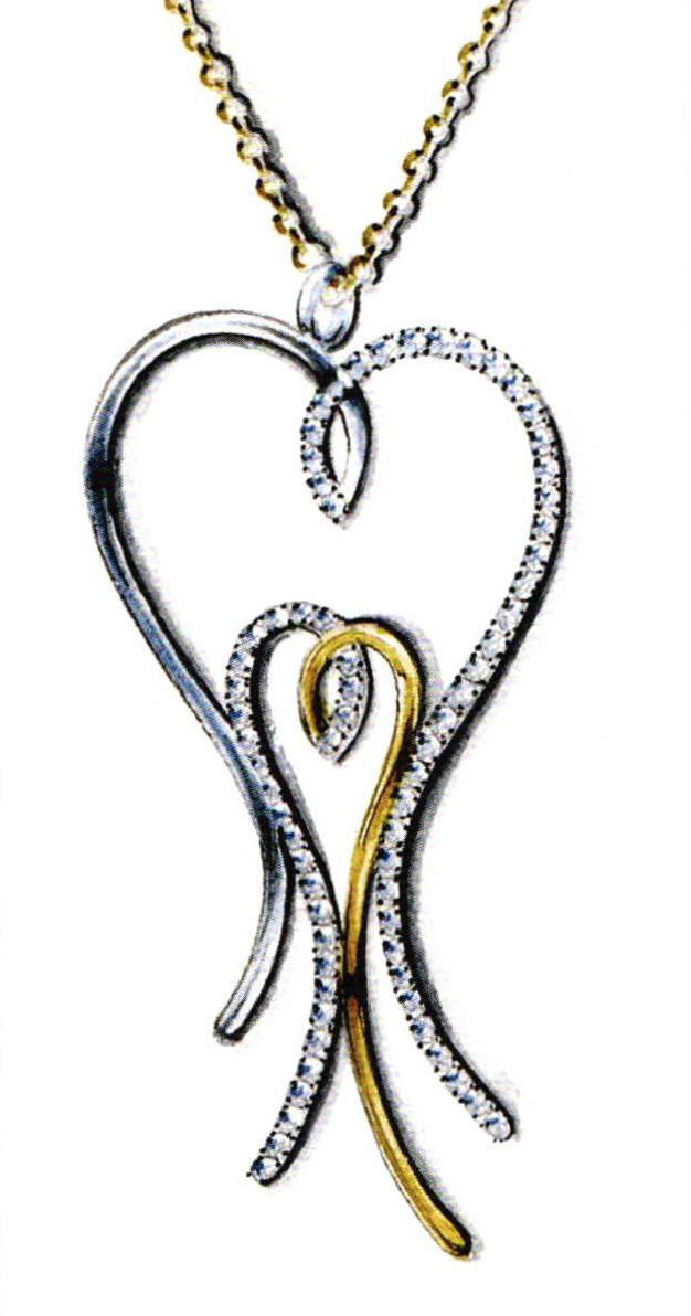 Pendant "Heart & Heart" by Francesco Ventura. Gold and diamonds. Drawing. 2006