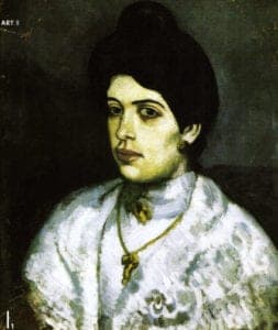 It was not until the onset of the 20th century that painters once more turned increasingly to portrait painting; expressionist painters in particular sought new ways of creating portraits. However, in view of the fact that artists were no longer fixed on the models and their accurate representation, Jewelry as such is often just intimated. It is rare that jewelry is portrayed in its design and materials; instead, the clear focus was on experiments in form and color. Pablo Picasso's (1881-1973) "Blue Period" also produced the Portrait of Corina Romeu in 1902. the jet black hair, tied up high, the high-collared dress with stole in broken white against a deep blue and green background: gold jewelry pendant, brooch and earrings. At the start of the 20th century, the subject of female portraits with jewelry was also an inherent part of the titles of some paintings: for example, the woman sat engrossed in her book by Félix Vallotton (1865-1925) in Woman reading with a yellow chain (1912), the Nu au collier rouge by Edgar Scauflaire (1893-1960) or the Nu gris au bracelet (1913) by Henri Matisse (1869-1954). However, although the bracelet is mentioned in the title of this painting, the tone in tone painting only hints at the jewelry without presenting it as such.