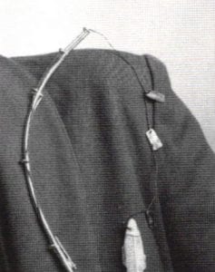 Kiff Slemmons has hinted at parallels to linguistic structures in Solberg's compositions. On the one hand, the various elements may be read as plot or narrative chunks for the wearer to create stories out of (even if we now know these elements had subjective, experiential roots). Comparably, each item might be seen as a word in a poem, an approach first stressed about other American craft artists by critic and editor Rose Slivka in her essay for the Renwick Gallery exhibition, "The Object as Poet." Slivka holds that the unexpected juxtapositions of found objects recalls Joseph Cornell and Solberg's work, with its simple but sophisticated choices of elements, definitely sustains such a reading. She is making wearable haiku.