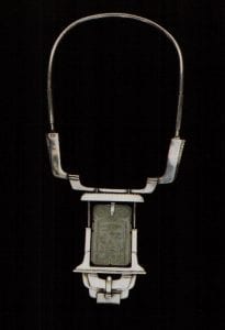 Pluralist in a time of resurgent nationalism, internationalist in a period of emerging cultural differences, Solberg and her art blur cultural and ethnic differences while preserving unique properties of each borrowed material. Thus, her world view is rooted in the shared global unity of craft and extrapolates memory of place into a unique art object. Never a serialist nor a production jeweler, Solberg approaches each work as a singular aesthetic entity using design, composition, placement and juxtaposition as organizing principles for an art which is immediately accessible on one level but also prone to wider and deeper appreciation and analysis.