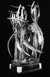 Although Joseph Giovannini in the U. of A. catalog essay states that Paley's functionalism has receded in these new sculptures, they can be seen as an extension of his earlier architectural commissions. When Paley was making functional objects, he had certain constraints, i.e., gates had to fit doorways and be architecturally compatible, tables has to be flat and the right height to put objects on. With sculpture, these guidelines are nonexistent or ambiguous, to say the least.