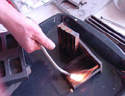 Always preheat the charcoal block to a glowing red efore adding metal. (Fig 7)