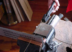 Various sized wire molds can be carved into the same charcoal block. Using the tip of a screwdriver in the same manner that the chisel is used for the sheet ingot mold, scrape out a depression ¼" deep and 2 ½" long. (Fig. 6)