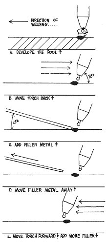 If correct penetration is achieved and amount of filler rod is added, the result is a solid bead of metal. If penetration is too shallow, the join may crack apart or pitting may occur when the bead is filed or carved in refining its shape. Good penetration means that a raised welt appears on the underside of the welded area. This may be filed away afterwards, but in some instances in a design, it is a definite disadvantage. Welding tiny hinge lugs would be quite a good trick. T.I.G. welding stainless steel, copper, silver, etc., is much easier than aluminum, so begin on these metals first. The inert gas replaces the oxygen you breathe somewhat, so take frequent breathing breaks it you should get dizzy. Drinking milk to coat the stomach lining sometimes helps too. Wear protective clothing and proper face and eye shields. With proper, sensible use, this technique is very safe.