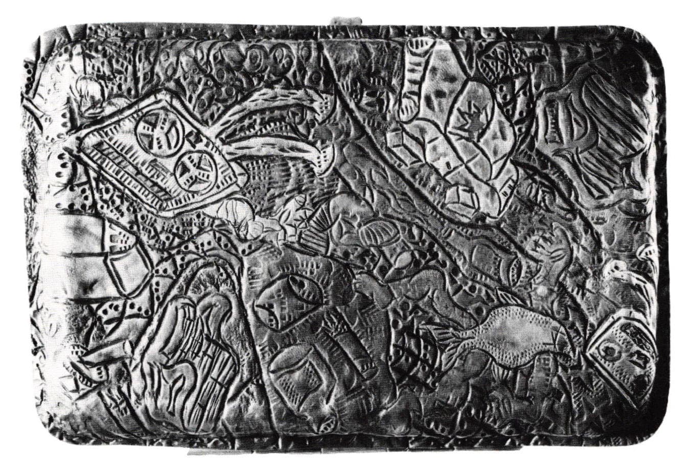 These are pseudo-traditional metal objects. One is a flask, others are boxes; there are a couple of spoons, some cups and diminutive vases. Yet in discussing the works, we can set aside these seemingly defining descriptions, returning to them only near the end of the discussion, as an added dimension to Norrell's work. For it is the pictorial image more than form, more than material, more than surface, more than use, that motivates and animates these artworks as a distinctive and unusual expression.