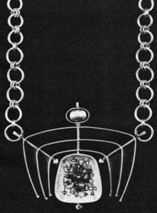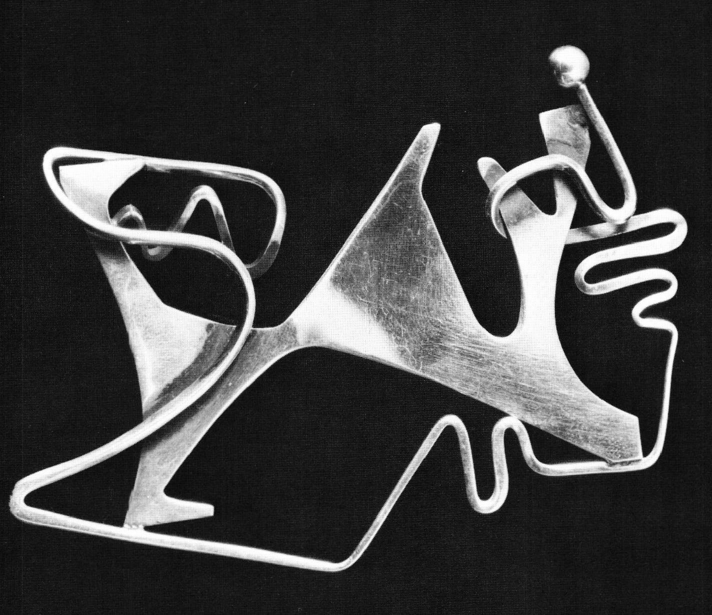 Recently, collectors have discovered a body of silver jewelry, eclectic in scope—by turns serious and whimsical—creative, original and quintessentially modern. It has been termed "50s jewelry," as if it embodied—in miniature—the aesthetics of that period. Yet, this casual association is misleading. While the 1950s did witness the widespread diffusion of this jewelry, its important features were formed as jewelers sought to ally themselves with the "project of modernism." This process was initiated in the 1930s and 1940s. It culminates—in the following decade—in the triumph of what can be called modernist jewelry as an official style. . . .