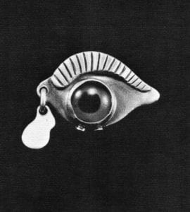 The origin of "contemporary jewelry" has been traced to 1936 when Sam Kramer began to make jewelry influenced by Surrealism. Kramer drew on that part of the modern experiment which devolved around fantasy and the absurd, automatic writing, the unconscious, chance and parody. A superb writer, he recollects the accidental discovery of his favorite technique:
