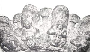 Gold jewelry, silver, chariots, votive figures and elegant household furnishings filled the tombs of the Etruscan dead. Metal objects made of bronze had a sacred character and ritualistic purpose. The chariots and wagons, for example, used for parades and funerals, were covered with open or pierced ornaments of bronze and iron. They may also have been decorated with figurative panels or decorative motifs formed by repoussé.