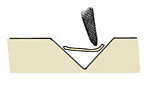5. Continue in this way, striking lines that run along the axis of the form, each time moving closer to the center. It may be necessary to switch to a narrower groove in the forming block. Stop when the form is slightly oval, with the opening at the longest axis of the oval.
