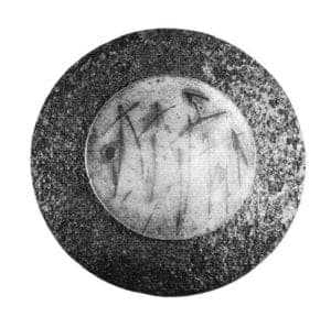 My first efforts used 0.3mm gold sheet fused to 1.0mm sterling sheet. Fusion was conducted using a soldering flux. With more experience, I began using 0.1 mm gold sheet and 1.5 to 2.0mm silver. These later experiments were done without flux, relying on the reducing atmosphere of the torch and charcoal block. At first the process was treated as a way to obtain a plain gold surface. It soon became apparent that it would be possible to engrave through the surface to expose the silver and develop graphic patterns. Patterns could be engraved in the surface before rolling. Line width could be manipulated by rolling. Line width, texture and relief can also be modified by re-fusing. One may thus use the metal as one uses drawing media and paper.