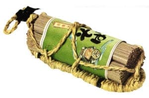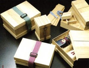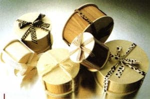 In the Far East, plants have always provided important materials for packaging. The leaves from deciduous trees such as oaks or magnolias are used frequently Halved sections of bamboo, bamboo leaves and rice straw, lotus and aspidistra, reed grass and bulrushes are materials used; from the current point of view of recycling, they should be seen as excellent proponents of environmental protection. The same applies to the finely carved splinters of cedar and Japanese cypress. Naturally, boxes and cases are also fashioned out of wood.