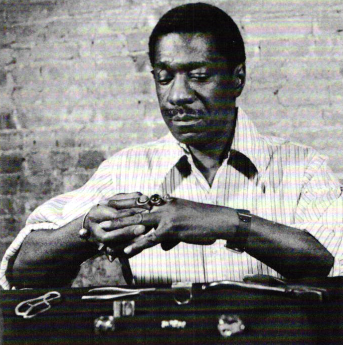 In the Village he met other artists and metalsmiths who were to influence and encourage him. Always a great lover of jazz, Smith would go with painter Charles Sebree and choreographer Talley Beatty to hear Billie Holiday sing in a club around the corner from the Third Street shop. Ralph Ellison, Gordon parks and countless other writers and intellectuals, both Black and White, were customers and friends. A mecca for both craftsman and consumer alike, Greenwich Village was already home to several other innovative metalsmiths: Paul Lobel, Sam Kramer, Arthur King and the Rebajes brothers. Lobel, actually, offered Smith a job when he eventually became disenchanted with Mason. Although he admired Lobel a great deal, he decided it was time to strike out on his own.