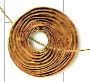 Brooches made from Japanese paper, nylon thread, gold, silver and Chinese ink by Kazumi Nagano