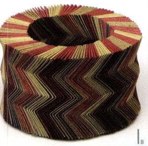 In fashion, it was the Japanese designer Issey Miyake who revolutionized the technique of folding some 15 years ago. His 'Pleats Please' collections were first launched in 1993. Made from single pieces of high quality 100% polyester fabric, the innovation behind Pleats Please is that the clothes are first cut and sewn together two-and-a-half to three times larger than the finished garments. Individual pieces are hand fed into a heat press sandwiched between two sheets of paper. The garment then emerges with permanent pleats. This industrial process allows both texture and form to be created at the same time. Vertical, horizontal and zig-zag pleating is used to create varying effect and architectural shapes. In addition to their unmistakable appearance, Miyake's artistic pieces of clothing also have various practical advantages: the garments store easily, travel well, require no ironing and can be machine-washed and dried within minutes. The Please Pleats collection is a classic and items can be admired in various museums across the world. It also continues to serve as a model for various fashion designers even today due to its harmonious and successful combination of western and eastern fashions, admired by both customers and art enthusiasts alike.