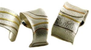 But the idea must always be the starting point, pervading throughout the line and ensuring a recognition effect. Textures and patina and perfect compositions of space and form are the criteria that inspire the work of these two jewelry artists. In this, Gill and Alan Saunders place their trust in craftsmanship and individuality, without losing track of the reproducibility of the work. Above all, they offer the results of their production to selected galleries and jewelers for contemporary jewelry throughout Europe. They have now amassed over 150 distribution partners.