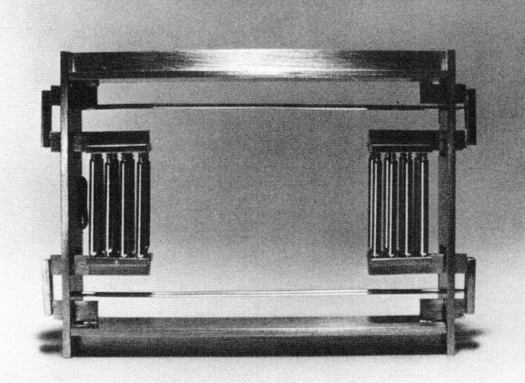 Veronika Schwarzinger continued her studies after Vienna at the Rietveld Academy in Amsterdam. While there she developed a series of work in glass and steel. The forms are simple geometric signs; some have flexible springs which allow them to be fixed to one's clothing in a variety of forms.